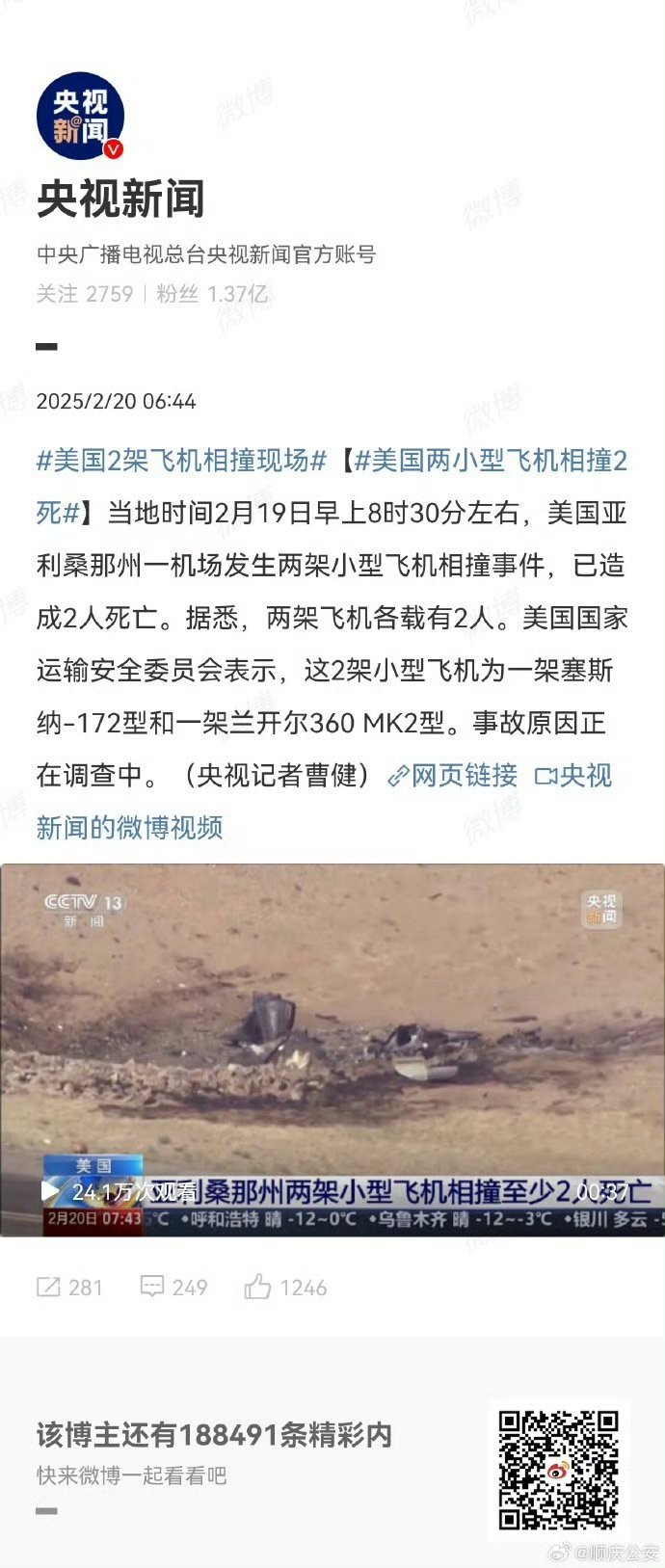 希望这篇文章能够引起大家对航空安全的关注,让我们共同为飞行安全努力!请大家多多转发和评论,让更多的人关注这一事件,也请大家保持关注和耐心,我们会持续为大家更新最新的消息。#军机坠毁#航空安全#祈祷安全飞行#共同关注#科技发展与应急响应能力